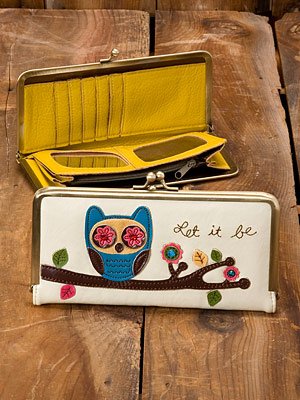 Stylish hinged wallet with embroidered, appliqué design.Customer Reviews