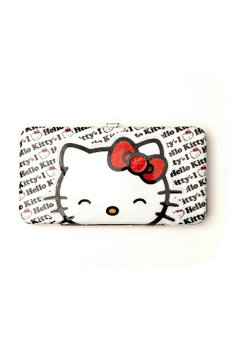This white hinge wallet features an allover Hello Kitty print and a vinyl applique face of the friendly feline. Interior includes two main pockets, one zipper pocket and lots of slots for your ID and cards.Customer Reviews