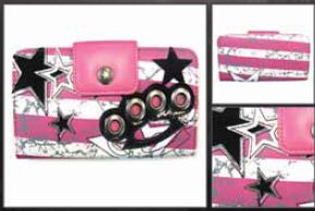 Novelty Brass Knuckles Logo Womens Bioworld Hinge Wallet Clutch Best