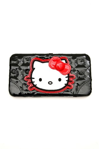 This wallet features a black patent quilt finish and Hello Kitty's face. Includes two main pockets, one zipper pocket and lots of slots for your ID and cards.Customer Reviews